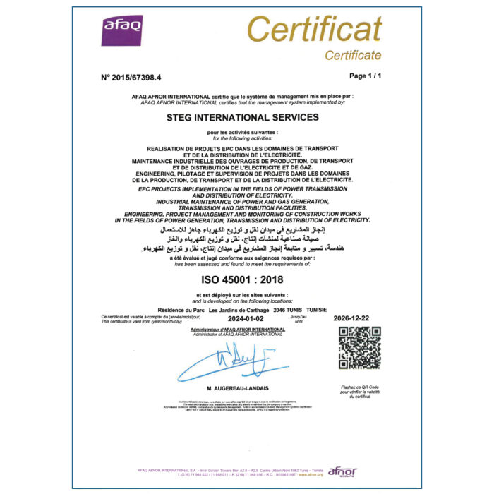 La STEG-IS s'est fixée pour objectif d'améliorer constamment ses processus par la mise en place d'un système de management intégré Qualité Sécurité Environnement.
